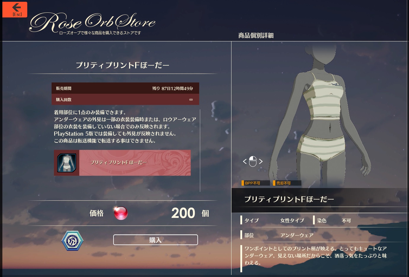 ショップの下着の説明見るとPS5では表示されませんって書いてある