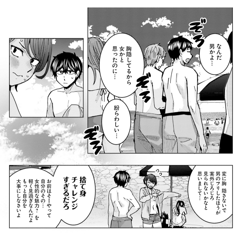 (そうはならんやろ)海パンだけで海水浴していたのを中学生になってもやめず。