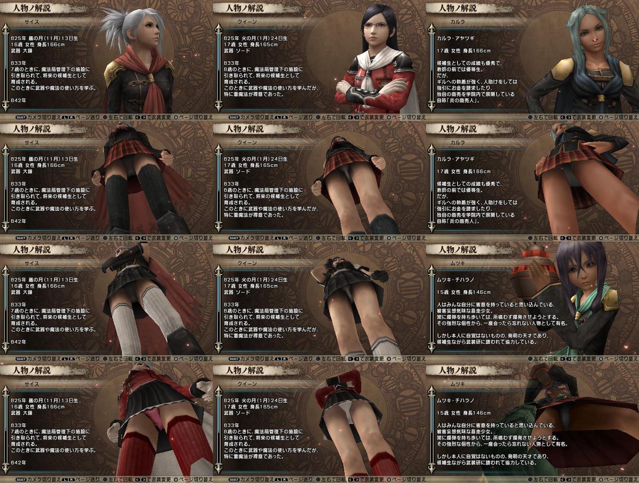 ゲーム中では見ようとしなきゃ見ること無いけど実は女キャラのパンツ柄は一人一人かなりこだわって作られてるからじっくりパンツ眺めるのも面白い