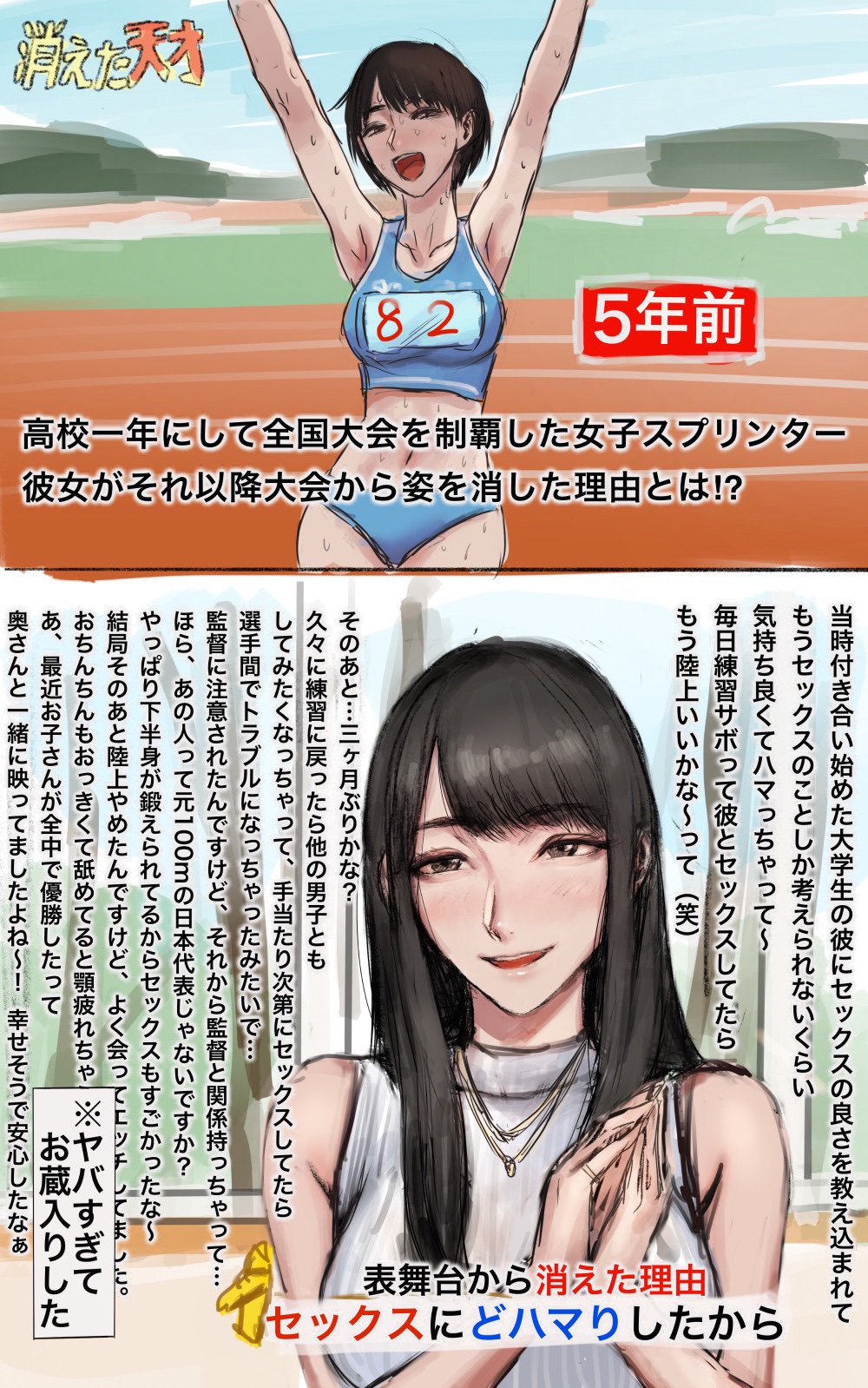 大学から社会人陸上とかになると、顔は綺麗になるが身体がガチすぎてエロさが薄れる場合がある(そっちのフェチもいるだろうけど